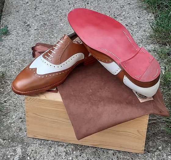 Kada je lepak suv, obuća se skida sa kalupa. Slede završne dorade: brušenje ivica, bojenje đona i poliranje, zatim se prokiva mesinganim ekserima koji osim kao dekoracija služe i da spoje sve slojeve u unutrašnjosti cipele. Kroji se unutrašnja tabanica na koju se obično utiskuje logo majstora. Na kraju, proverava se svaki detalj pre pakovanja.